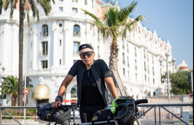 Until 5am in the morning I met nobody, only a dog that blocked the road and really scared me. I went through dozens of corners in the hills waiting for a view of the Mediterranean Sea. After hours in those hills, I finally see the first sign: Metropole Nice – Cote d’Azur. Terre de Cyclistes. Tears run down my face. I get into morning traffic and all of the sudden I cycle under palm trees at the beach. What a rewarding goal.